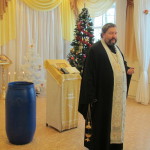 Перед началом молебна батюшка напомнил учащимся, учителям, присутствующим родителям о смысле события Богоявления, рассказал о том, что оно привнесло в наш мир, пожелал всем духовного и телесного здоровья. После водосвятия о. Константин щедро окропил каждого крещенской водой. Дети набрали святую воду в приготовленные сосуды, чтобы унести домой.